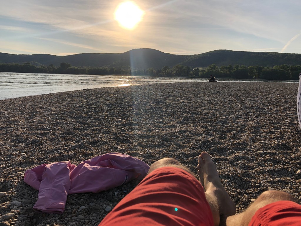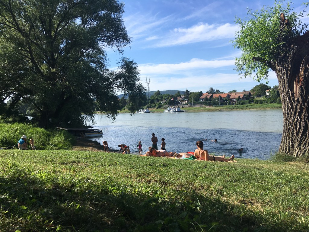 Kisoroszi island peak: the iconic point of the Danube Bend. Good beach & panorama. Bring food and drink because the bar is further away. The beach is pebble, The Danube is fast-flowing, but the water is slowly deepening.