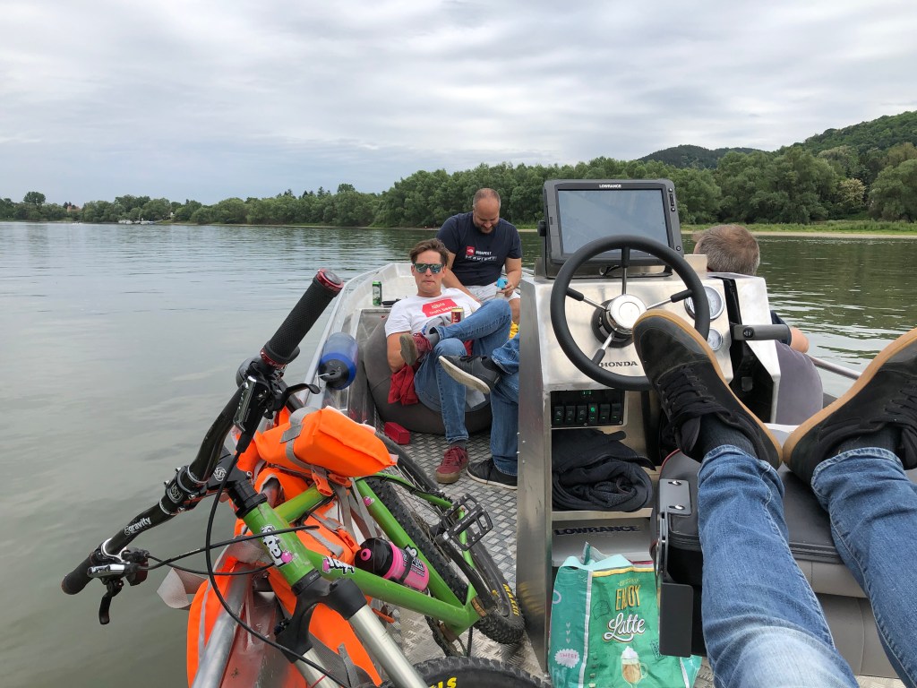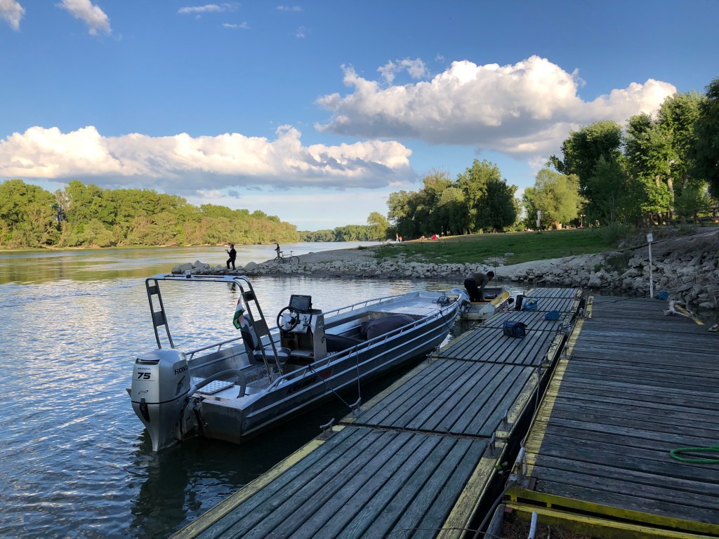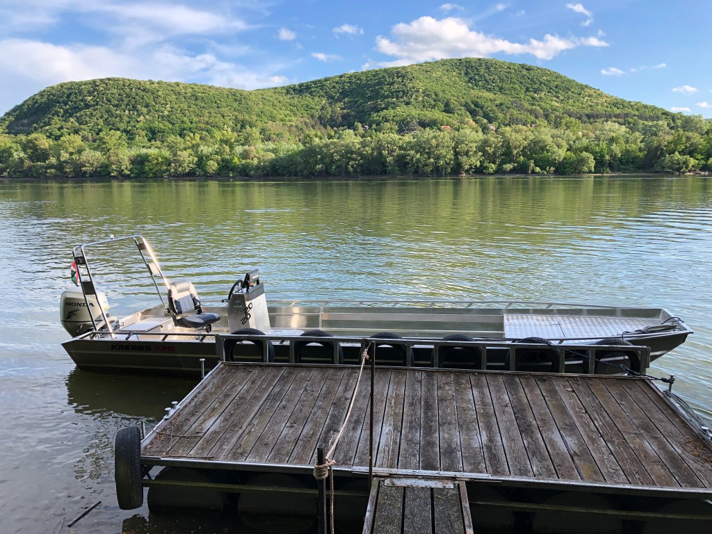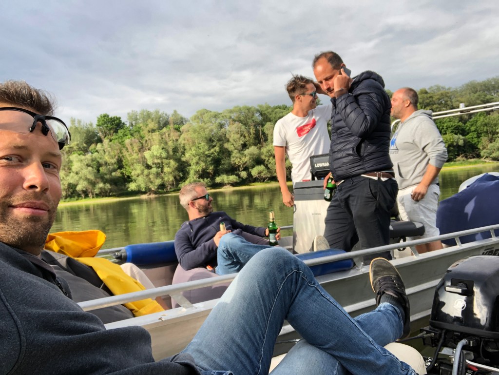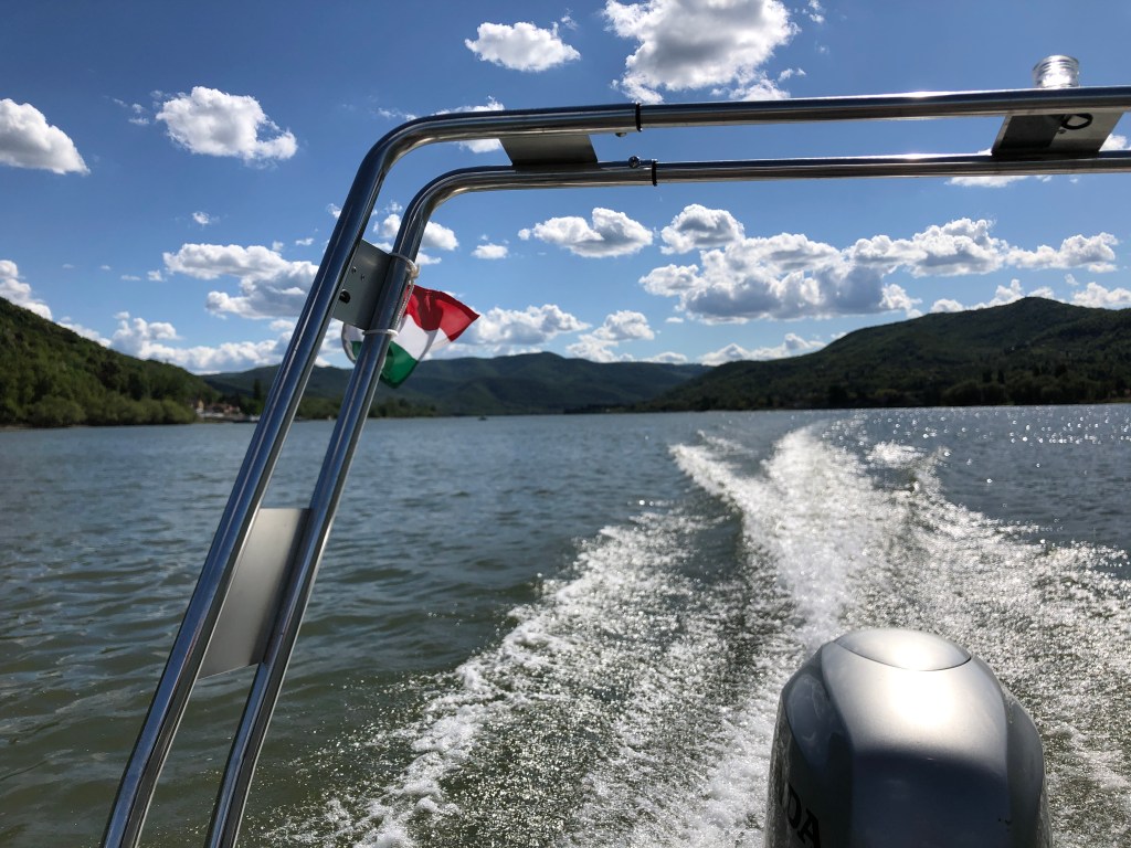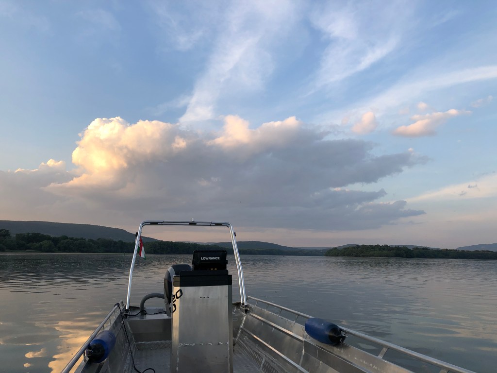 With motorboat in the Danube Bend